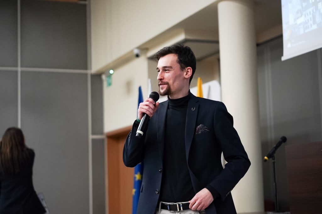 Perspektywę studentów przedstawił Przewodniczący Samorządu Studenckiego, Michał Chorodeński, który zachęcał do wyboru Uczelni.