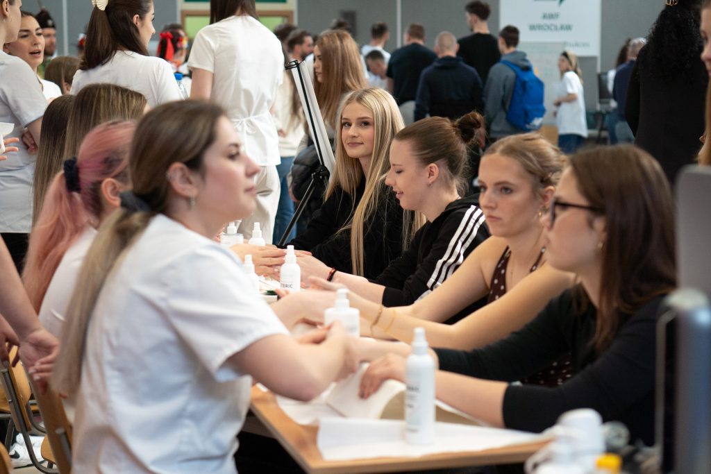 Dużą popularnością cieszyły się też zajęcia pokazowe i praktyczne. Uczestnicy brali udział w zajęciach „Szkoła Pleców: Zdrowy kręgosłup” prowadzonych przez dr Iwonę Wilk, obserwowali ćwiczenia realizowane przez dr Katarzynę Barczyk-Pawelec, dr Arlettę Hawrylak oraz dr Adama Paluszaka, a także mieli możliwość zwiedzania specjalistycznych przestrzeni, takich jak pracownie fizjoterapeutyczne, hydroterapia czy kriokomora. Bogatą ofertę zaprezentował również Kierunek Kosmetologii.