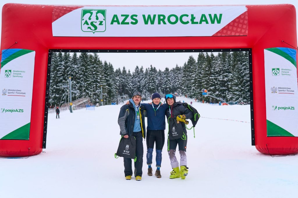 W sobotę 9.01.2026 w ośrodku narciarskim Czarna Góra odbyła się kolejna edycja Dolnośląskiej Ligi Międzyuczelnianej w narciarstwie zjazdowym. W mroźnej i zimowej aurze, rozegrano obie konkurencje techniczne – gigant i slalom. Naszą Uczelnię reprezentowało sześcioro studentów, Alicja Karoń, Katarzyna Szyndler, Michał Lipczyński, Sebastian Wawrzyszczuk, Mateusz Szczepaniak i Michał Sidłowski. Najlepiej wypadł Michał Lipczyński, który zajął trzecie miejsce w gigancie. W slalomie złapał tyczkę między nogi, i nie ukończył konkurencji, choć miał szansę osiągnąć lepszy wynik niż w gigancie. Pozostała piątka dzielnie walczył o jak najlepsze miejsca dla Naszej Uczelni. Najlepiej wypadli reprezentanci Politechniki Wrocławskiej, mamy nadzieję, że w przyszłym roku nasi reprezentanci im dorównają.
