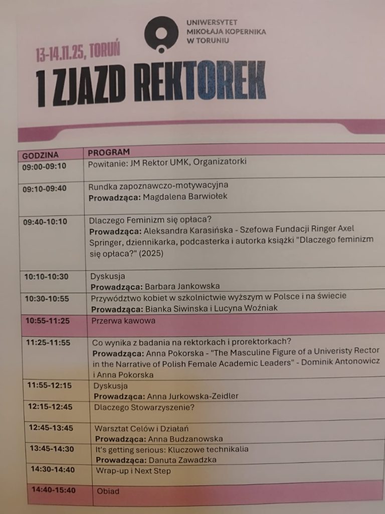 W dniach 13–14 listopada 2025 r. na Uniwersytecie im. Mikołaja Kopernika w Toruniu odbył się historyczny Pierwszy Zjazd Rektorek i Prorektorek Uczelni Wyższych. Spotkanie było okazją do wzajemnej wymiany doświadczeń, zainaugurowało również proces budowania sieci współpracy i wzajemnego wsparcia polskich liderek akademickich. Podczas spotkania Panie Rektorki podpisały Deklarację przystąpienia do Stowarzyszenia „Women Rectors Association”.